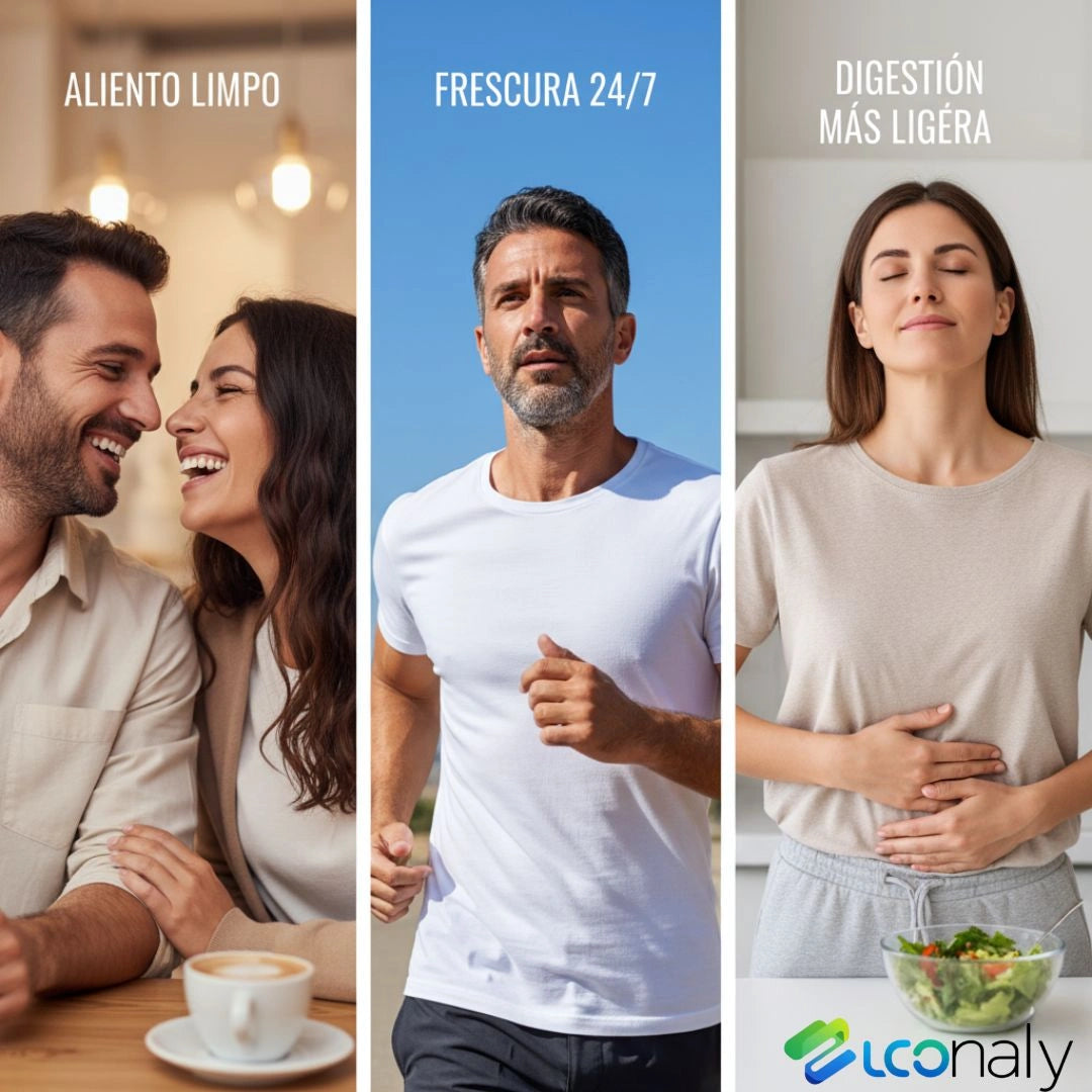 ✅ Ingredientes con evidencia científica (Clorofila, Menta, Vitamina C).